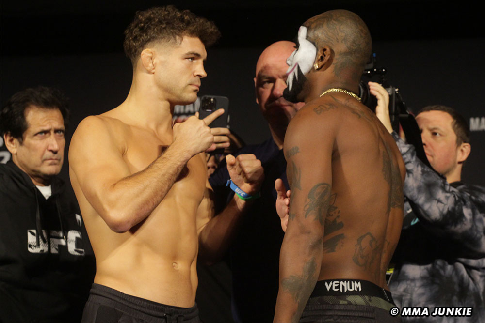Unfortunately for Green people who step in the cage with Iaquinta “get touched” and can take a significant amount of damage while doing so. As far as backing his comments up, backing down isn’t something anyone has seen from Iaquinta before and certainly wont be the case tonight. Green has never been one to steer away from making comments, before, during, or after a fight. Iaquinta has kept his comments to a minimum, if anything praising Green more than anything for his high activity level the last year and unique style. During yesterdays weigh in’s there weren’t any words exchanged between the two, only a long stare down.