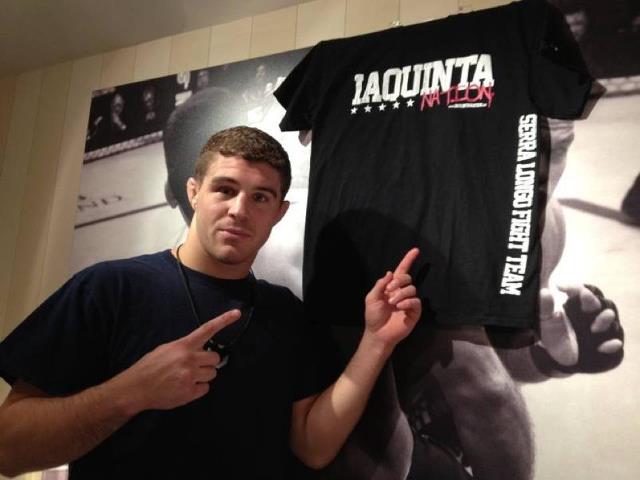 Now although some of you all ready know about it, let’s talk a little bit about the two pictures above and below. Before I left town last week I asked Urijah Faber via twitter if he’d want me to bring him an Iaquinta Nation T-Shirt. He said yes so I brought two shirts with me so he could give one to Al as well. Once my friends and I got into town being the stealthy people that we are we found out where the guys trained at. We took a shot and headed over that way in hopes to catch Al or Faber. After waiting for about twenty minutes we were told by some film crew we had to leave the area. As we started to walk down the road we saw the van turn down the street that takes Team Faber to practice. As the van approached us we could hear Al yelling and banging on the window. “Yo Yo Yo Stop Stop!” The Van stopped for a few seconds as we waited from about 30 feet away, but then continued on down the block up to the training facility. Just in case we waited there and to our surprise Al came running towards us. We met him halfway and you could quickly see the shock on his face that we were there. He gave all of us a hug. There weren’t many words exchanged as this all took place over about ten seconds. My friend Doug told him he was killing it and to keep up the good work. I told him to go back as we didn’t want to get him in trouble, but gave him two Iaquinta Nation T- Shirts for him and Faber. Even though it happened so quickly I think it really made Al’s day, and it definitely made all of ours. It was awesome to get to see him.