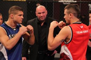 If you’ve ever seen Dominick Cruz fight you know he has a very unorthodox style. He’s taken that same unorthodox fight style and incorporated it into his strategy for picking fights so far this season. Week one Cruz picked his number one guy Justin Lawrence to fight, and then gave control back to Faber to choose someone from his team to fight. Once Faber didn’t choose, Cruz picked Cristiano Marcello a guy who many felt was one of the top fighters on the show. This is a strategy we’ve never seen before. Usually coaches choose their match ups very carefully trying to put a stronger fighter against a weaker opponent. Last week it payed off as Lawrence knocked out Marcello in the second round. Cruz went with that same game plan this week picking Faber’s number one pick Al Iaquinta to fight Myles Jury. If Cruz thinks it’s a good idea to call out Iaquinta and try and send a message that’s all well and good, but I’m sure most would agree he picked the wrong guy to try and make an example out of. Al had some thoughts of his own via twitter late Friday night saying “Got called out tonight, not the first time, probably won’t be the last… got my ass kicked then won the fight, he’s never been in a war.” Check out an article from MMAjunkie HERE touching more on Cruz’s unique fight selections and check back here all week for constant updates leading up to Fridays Fight.