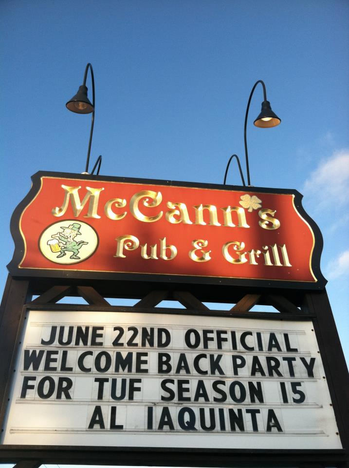 I wanted to remind everyone to come down to McCann’s Friday Night to watch Iaquinta vs. Chiesa in the TUF Finale. As always McCann’s will offer an open bar(9:00-12:00 Top shelf, no shots, and some appetizers as well.) Check out some more details on Facebook HERE. McCann’s has been the number one spot to watch all of Al’s fights throughout this season. We want all of Iaquinta Nation to come down to McCann’s once again and represent #TeamIaquinta during the Finale. Well also have a small film crew from Ring Fever coming down to check out all the excitement and even hear from all of you. Let’s get as many people to McCann’s as possible to show them how dedicated and supportive all of Iaquinta Nation is. We hope to see you all there, and remember even if you aren’t doing the open bar please come down, enjoy the fight, and show some support.